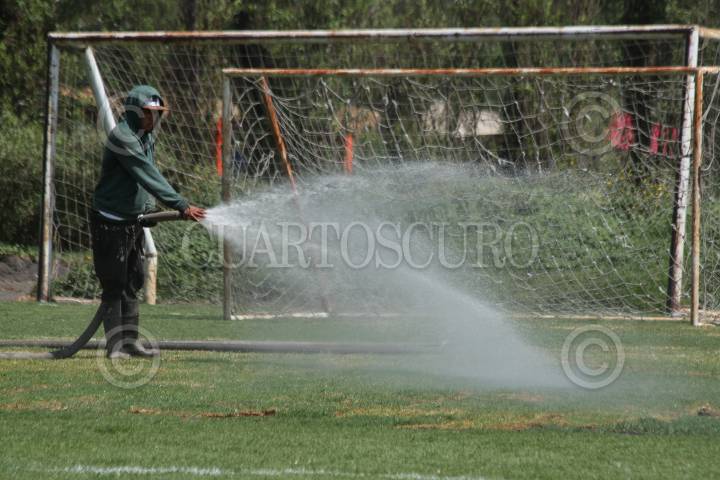 CIUDAD DE MÉXICO, 07ABRIL2019.- Hombre riega el pasto de cancha de fútbol bajo el intenso sol que el día domingo tuvo una máxima de 28 grados. FOTO: ROGELIO MORALES /CUARTOSCURO.COM