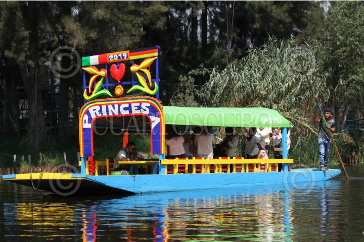 CIUDAD DE MÉXICO, 07ABRIL2019.- Familia disfruta de un paso por el Canal de Xochimilco sobre una trajinera que lleva el nombre de la preciosa. FOTO: ROGELIO MORALES /CUARTOSCURO.COM