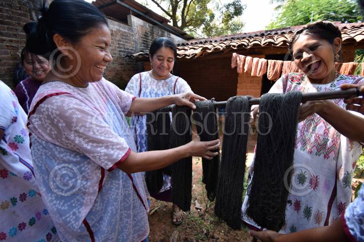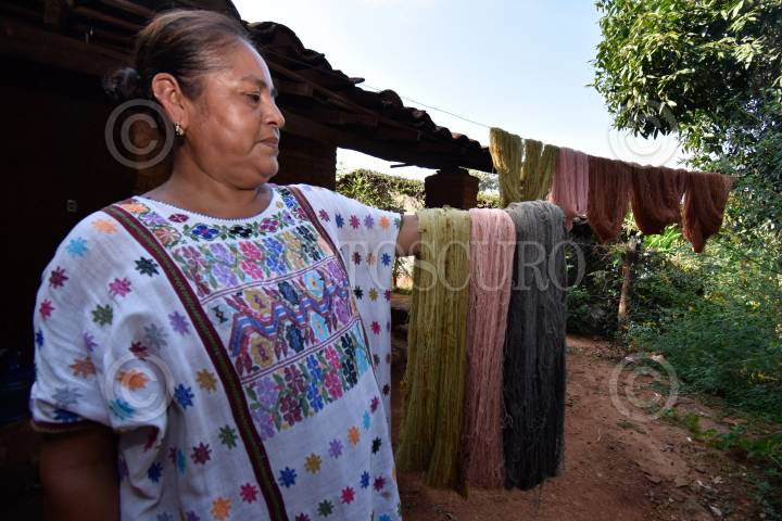 Explicó que, en este grupo de mujeres, se continúa trabajando con la pigmentación de hilos de algodón de manera natural, es decir, usando plantas, flores, frutos, hojas y cortezas; como hojas de mango, zapote negro, cúrcuma, corteza de árbol de manche, Bugambilias, pétalos de flor de cempaxúchitl, cebolla morada, almendras y frijoles, además de muchas otras silvestres.