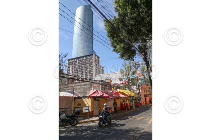 CIUDAD DE MÉXICO, 08ENERO2025.- Calle de Real de Mayorazgo en el pueblo de Xoco sobrevive ante las grandes edificaciones por la zona como Torre Mitikah. FOTO: MOISÉS PABLO/CUARTOSCURO.COM