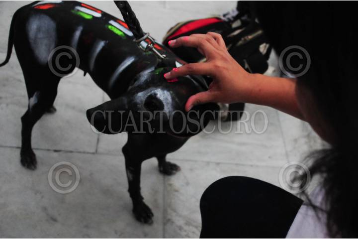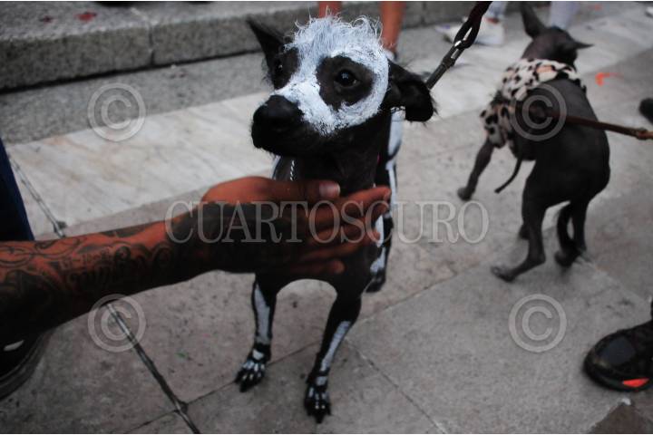 Un perro Xoloitzcuincle a su llegada al Zócalo.