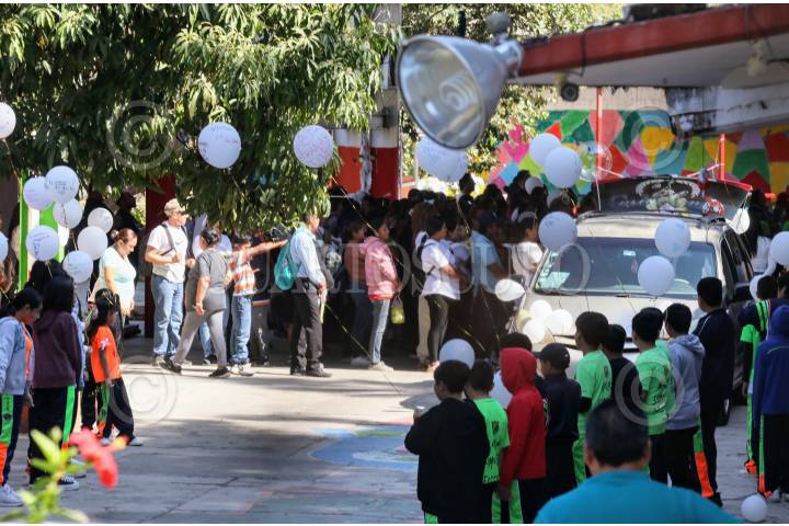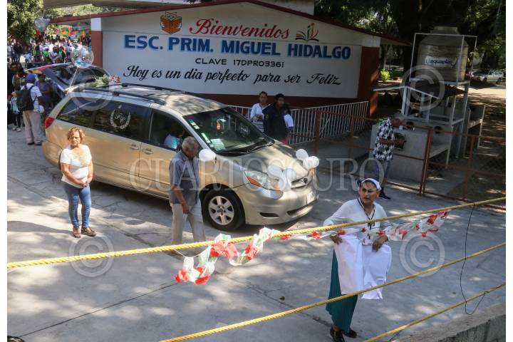 YAUTEPEC, MORELOS, 04DICIEMBRE2024.- Cortejo fúnebre del niño Diego de once años, alumno de sexto año de la escuela Miguel Hidalgo de este municipio. El niño murió luego de que fue herido por una bala pérdida, cuando acudió a comprar tortillas y quedó envuelto en una balacera donde un hombre de 36 años murió. Vecinos, familiares, compañeros de escuela acompañaron el cortejo que recorrió las calles del municipio, llegando al zócalo donde el padre del niño lanzo un fuerte mensaje a la sociedad y gobernantes. FOTO: MARGARITO PÉREZ RETANA/CUARTOSCURO.COM
