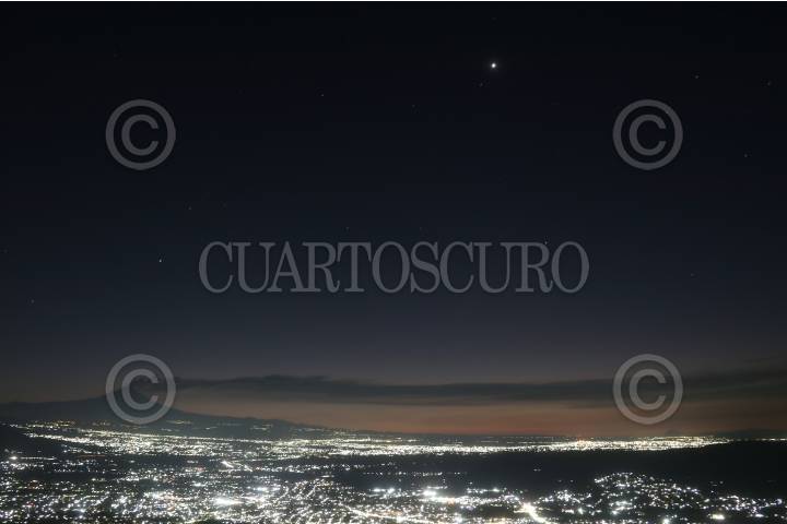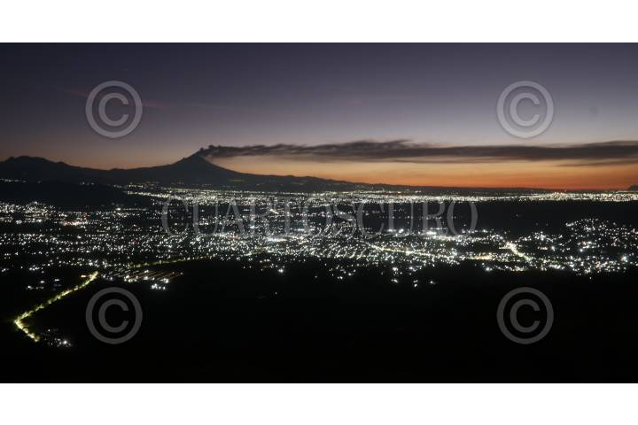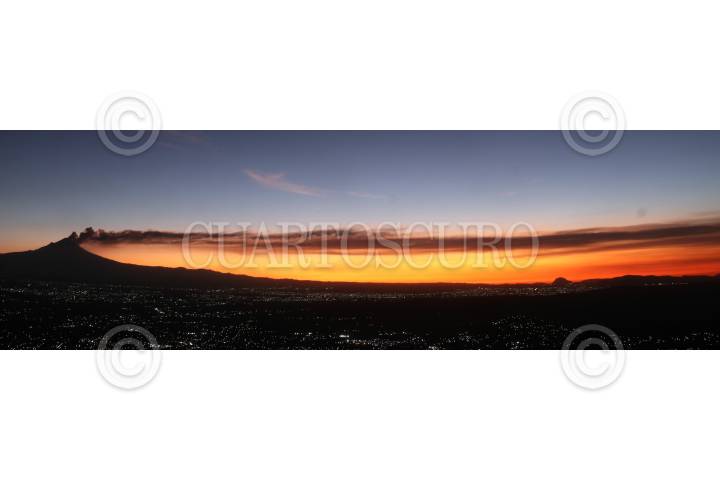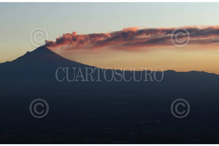 YAUTEPEC, MORELOS, 16NOVIEMBRE2023.- El volcán Popocatépetl ha mantenido actividad durante las últimas horas, al amanecer se pudo observar una larga fumarola de ceniza que se dirige hacia el sur. La imagen fue tomada durante la aurora de este día desde Las Tetillas, prominencias volcánicas de más de 1600 msnm de altura, ubicadas en este municipio. FOTO: MARGARITO PÉREZ RETANA/CUARTOSCURO.COM