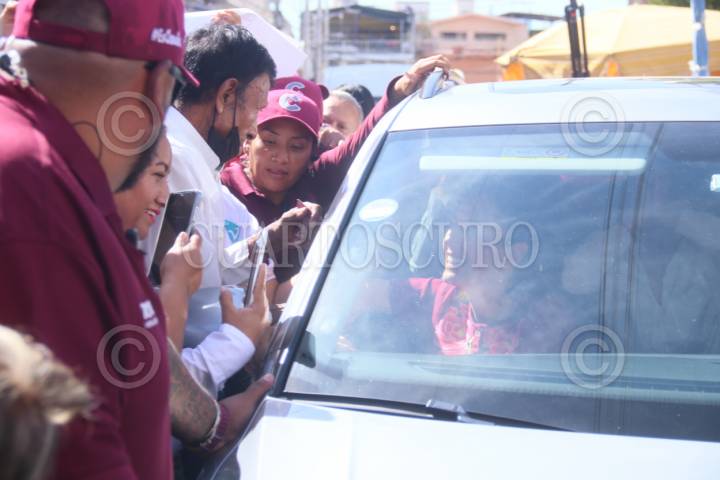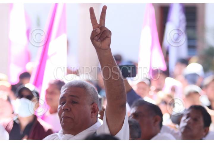 YAUTEPEC, MORELOS, 13ENERO2024.- Claudia Sheinbaum Pardo, precandidata única a la presidencia de la República por el Movimiento de Regeneración Nacional se reunió con militantes en la plaza del Chinelo. Estuvo acompañada de Ulises Bravo Molina y Mario Delgado dirigentes estatal y nacional de MORENA, de Gerardo Fernández Noroña y Ricardo Monreal. En la imagen Margarita González Saravia, precandidata única de MORENA a la gubernatura de Morelos. FOTO: MARGARITO PEREZ RETANA/CUARTOSCURO.COM