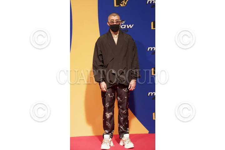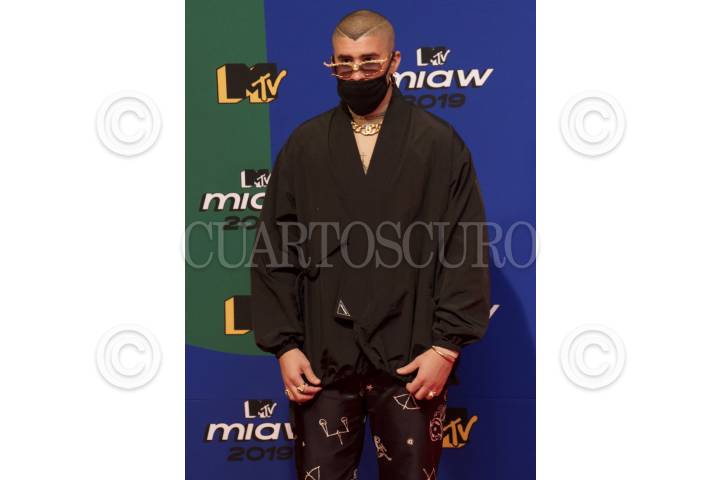 CIUDAD DE MÉXICO, 21JUNIO2019.- Bad Bunny, durante la Pink Carpet de los Premios MTV Miaw 2019, en el Palacio de los Deportes. FOTO: ROGELIO MORALES /CUARTOSCURO.COM
