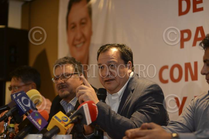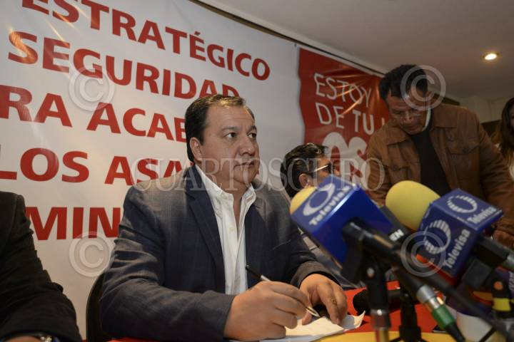 TOLUCA, ESTADO DE MÉXICO, 04ABRIL2017.- El candidato del PT a la gubernatura del Estado de México, Óscar González Yáñez, presento ante medios de comunicación su Plan Estratégico de Seguridad para Acabar con los Asaltos y Feminicidios, y propuso establecer la pena de muerte para sancionar a los feminicidas. FOTO: ARTEMIO GUERRA BAZ /CUARTOSCURO.COM