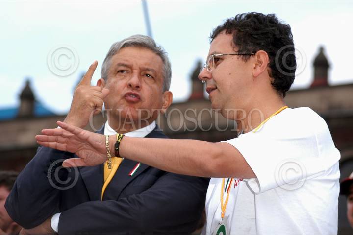 MÉXICO D.F. 16SEPTIMEBRE2006.- Andrés Manuel López Obrador, excandidato a la presidencia de la república por la coalición por el Bien de Todos, acompañado de Cesar Yañes vocero del excadidato, durante la convención nacional democratica, que se realizo en el Zócalo de la ciudad. FOTO:GUILLERMO PEREA/CUARTOSCURO.COM