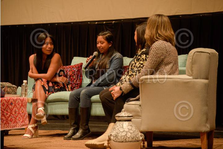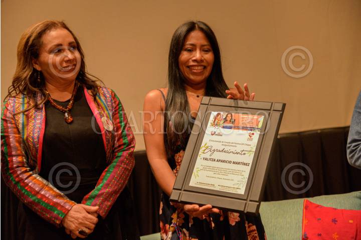 La actriz Yalitza Aparicio se presentó en el Centro Cultural Bicentenario de la Universidad Autónoma de San Luis Potosí como parte de las actividades para conmemorar el Día Internacional de la Mujer.