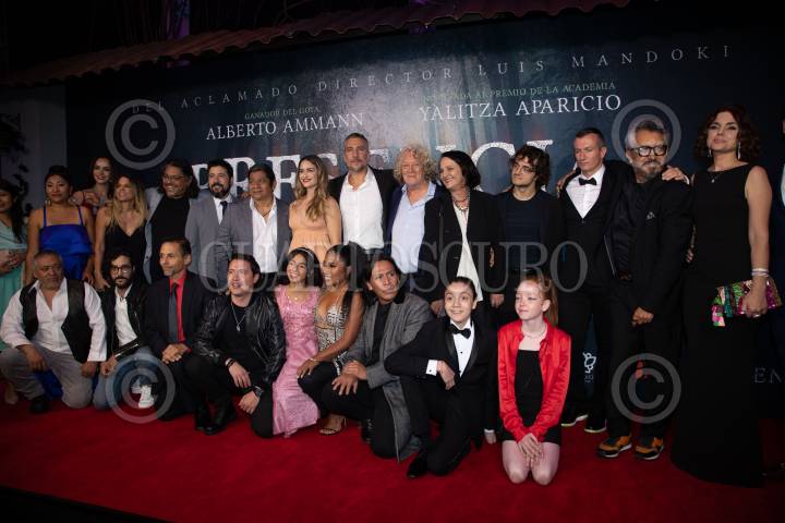 Parte del elenco a su paso por la alfombra roja de la película “Presencias” que estrena en la plataforma de VIX+.