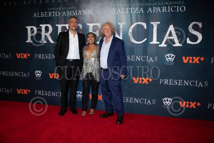 Alberto Ammann, Yalitza Aparicio y Luis Mandoki a su paso por la alfombra roja de la película “Presencias” que estrena en la plataforma de VIX+.