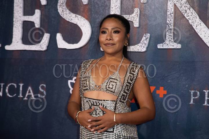 Yalitza Aparicio a su paso por la alfombra roja de la película “Presencias” que estrena en la plataforma de VIX+.