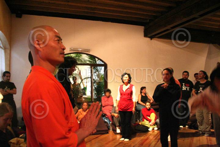 MÉXICO, D.F. 04OCTUBRE2006.- Integrantes del Centro Budista de la Ciudad de México esperaron la llegada de el monje de Shaolin SiFu Shi Yan Ming, quien dió una conferencia y presenció una rutina de Tai Chi que ofrecieron alumnos del lugar. FOTO: PAOLA HIDALGO/CUARTOSCURO.COM