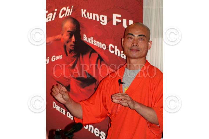 MÉXICO, D.F. 04OCTUBRE2006.- El monje de Shaolin SiFu Shi Yan Ming visitó la capital del país, acudió al Centro Busdista de la Ciudad de México donde ofreció una conferencia y presenció una rutina de Tai Chi que ofrecieron alumnos del lugar. FOTO: PAOLA HIDALGO/CUARTOSCURO.COM