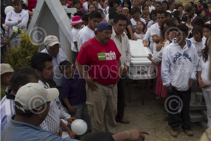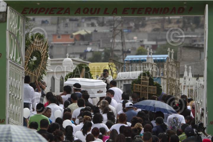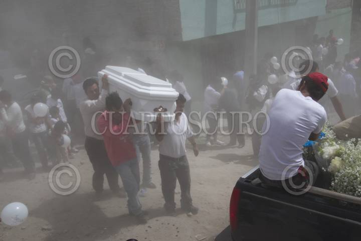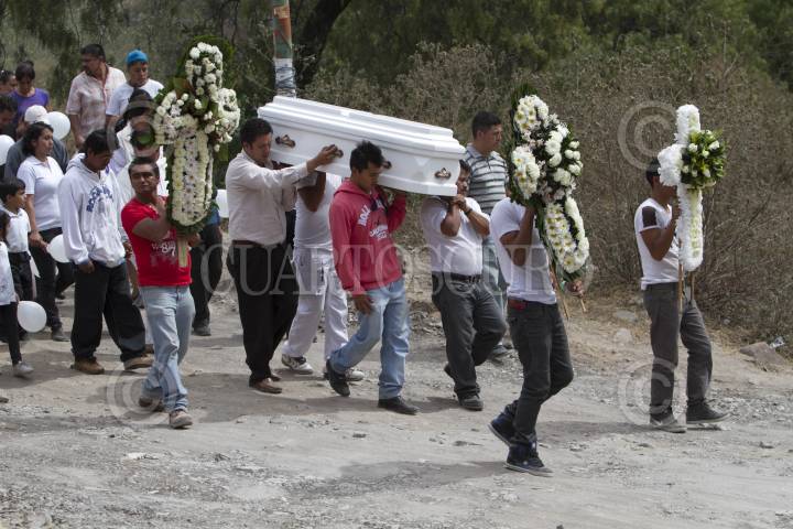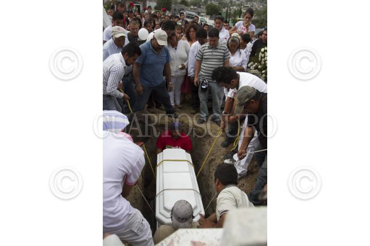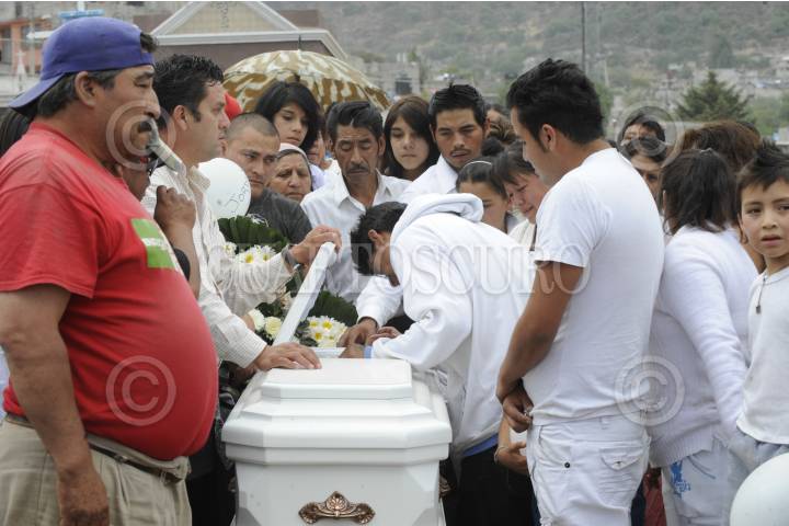 ECATEPEC, ESTADO DE MÉXICO., 17MARZO2014.- Familiares de Jordán Yandel Corte Fragoso, acudieron a dar el último adiós después de haber fallecido en la madrugada de ayer, de tan sólo tres años de edad, tras no haber sido posible extraerle la ojiva que se le incrustó al recibir una bala perdida en la cabeza. El cuerpo del menor fue sepultado en el panteón de San Andrés de la Cañada, después de una misa de cuerpo presente. FOTO: GUILLERMO PEREA /CUARTOSCURO.COM