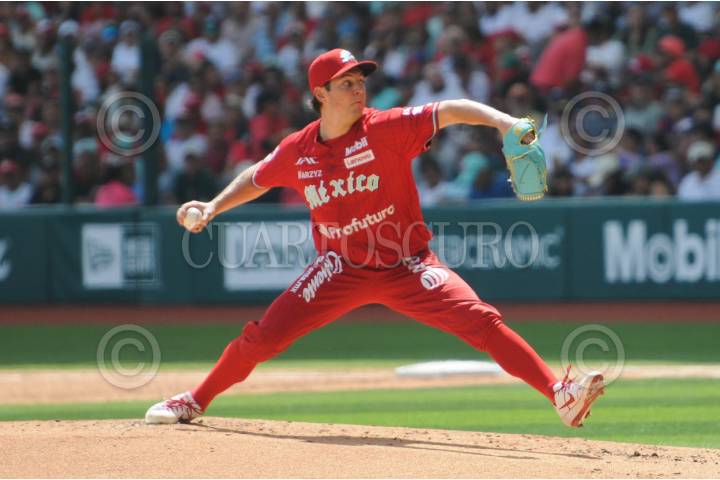 CIUDAD DE MÉXICO, 24MARZO2024.- Trevor Bauer, pitcher de los Diablos Rojos del México, abrió el primer juego contra LOS Yankees de Nueva York. FOTO: DANIEL AUGUSTO /CUARTOSCURO.COM