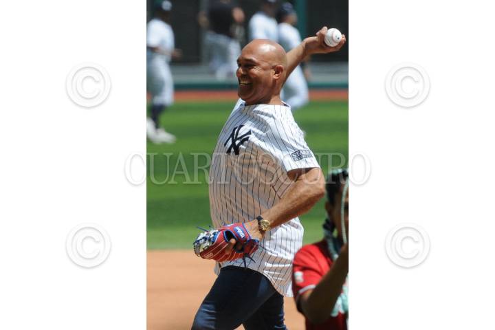 CIUDAD DE MÉXICO, 24MARZO2024.- El ex beisbolista Mariano Rivera lanzó la primera bola para inaugurar el juego entre Diablos Rojos del México y los Yankees de Nueva York. FOTO: DANIEL AUGUSTO /CUARTOSCURO.COM