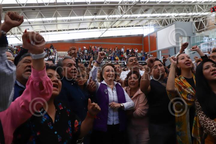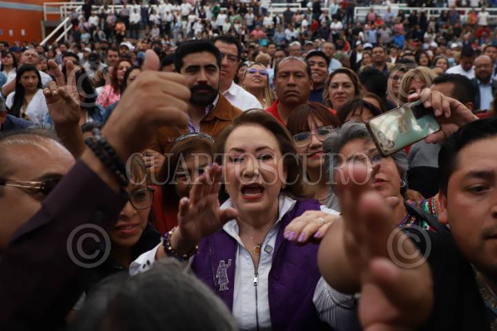 ECATEPEC, EDOMEX, 30MARZO2025.- La ministra, Yasmín Esquivel, durante su discurso en el evento de su inicio de campaña. FOTO: DANIEL AUGUSTO/ CUARTOSCURO.COM