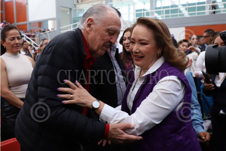 ECATEPEC, EDOMEX, 30MARZO2025.- La ministra Yasmín Esquivel, saluda a su esposo, José María Riobóo, a su llegada al evento que dio inicio a su campaña rumbo a las elecciones del Poder Judicial. FOTO: DANIEL AUGUSTO/ CUARTOSCURO.COM