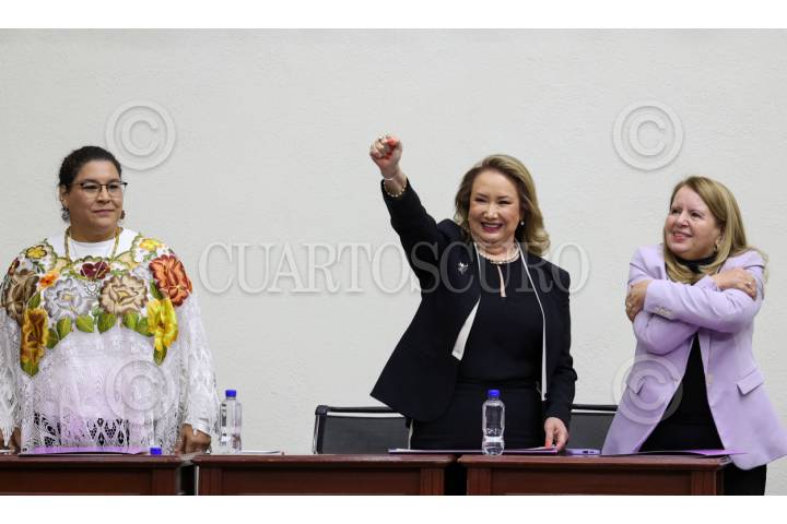 CIUDAD DE MÉXICO, 15JUNIO2025.- Las ministras Lenia Batres, Yasmín Esquivel y Loretta durante la ceremonia en donde recibieron sus constancias de mayoría de la Elección del Poder Judicial, durante una ceremonia en el INE. FOTO: MOISÉS PABLO/CUARTOSCURO.COM