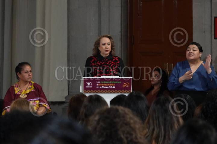 CIUDAD DE MÉXICO, 10SEPTIEMBRE2025.- La ministra Yasmín Esquivel Mossa durante la realización del Espacio de Diálogo de los Saberes: Las Mujeres Indígenas y Afromexicanas en la Nueva SCJN en la sede central del Poder Judicial. FOTO: GALO CAÑAS/CUARTOSCURO.COM