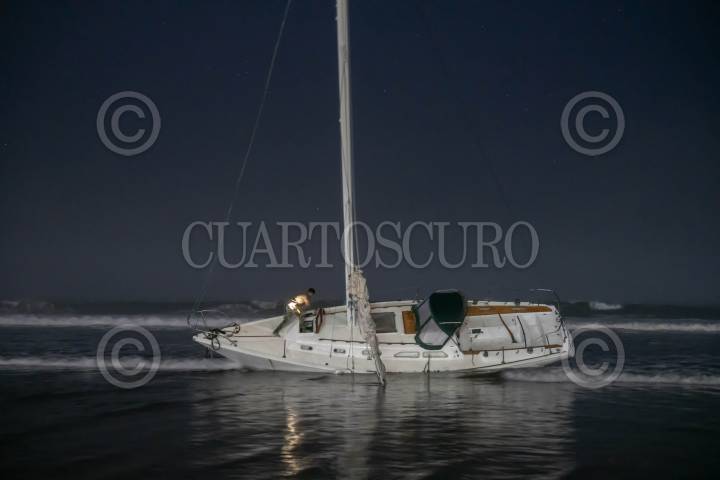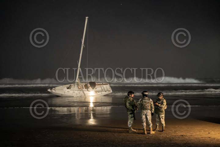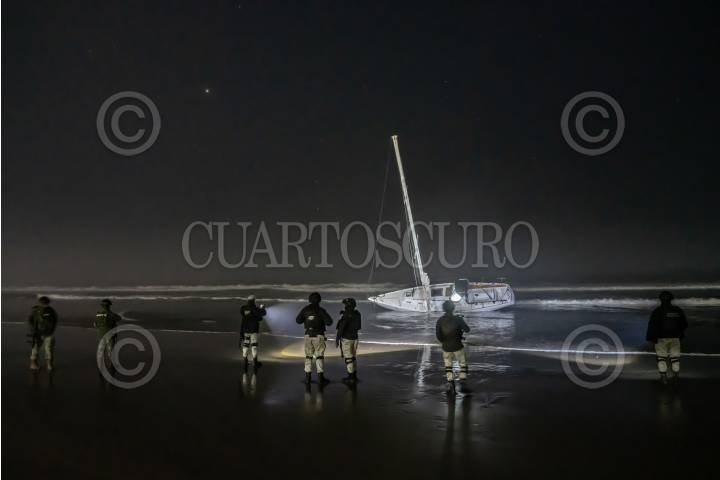 TIJUANA, BAJA CALIFORNIA, 06DIC2024.- Durante la noche del viernes, locatarios establecidos en el malecón de Playas de Tijuana reportaron a las autoridades, la presencia de un yate varado de color blanco, en la orilla del muro fronterizo que divide a México y Estados Unidos. Al recibir el reporte llegaron elementos de la unidad de salvavidas de bomberos de Tijuana, quienes reportaron el incidente a la Marina. Cuando elementos militares arribaron al sitio, realizaron la inspección dentro del yate, pero encontraron ninguna persona abordo. Hasta el momento se desconoce la procedencia de esta unidad acuática. FOTO: OMAR MARTÍNEZ/ CUARTOSCURO.COM