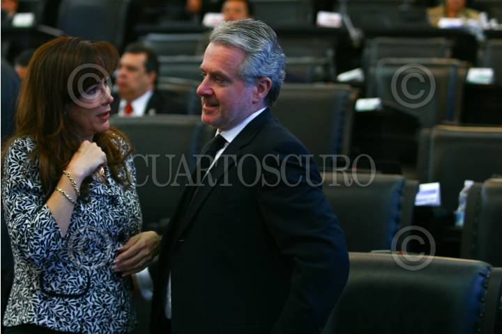 MÉXICO, D.F., 22SEPTIEMBRE2009.- El Senador Panista Santiago Creel conversa con la senadora Yeidckol Malka Polevnsky Gurwitz durante la sesión en el Senado de la República. FOTO: SÁSHENKA GUTIÉRREZ/CUARTOSCURO.COM