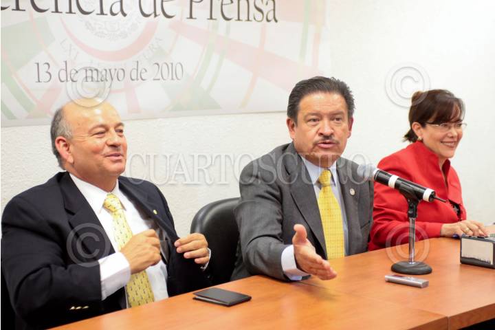 MÉXICO, D.F., 14MAYO2010.- Los senadores, Jesús Garibay, Carlos Navarrete y Yeidckol Polevnsky, ofrecieron una conferencia de prensa en la cual opinaron sobre los apagones en la ciudad de México y el asesinato del candidato del PAN en Tamaulipas. FOTO: CUARTOSCURO.COM