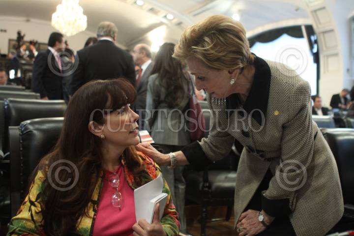 MÉXICO, D.F., 15MARZO2011.- Las senadoras Yeidckol Polevnsky y María de los Ángeles Moreno, en la sesión del Senado de la República. FOTO: MOISÉS PABLO/CUARTOSCURO.COM