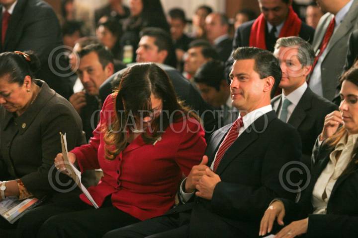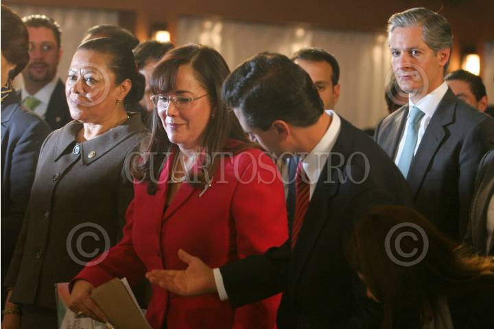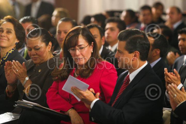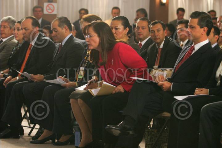 TOLUCA, ESTADO DE MÉXICO, 22NOVIEMBRE2010.- Alma Carolina Viggiano Austria, Marìa de los Angeles Moreno, senadora del PRI, Enrique Peña, gobernador del Estado de México y Luis Cadena Ortíz Montellano, Secretario de Desarrollo Metropolitano, durante durante el foro regional "Hacia un Marco Jurídico del Desarrollo Metropolitano" realizado en el Centro Cultural Mexiquense. FOTO: SAÚL LÓPEZ/CUARTOSCURO.COM