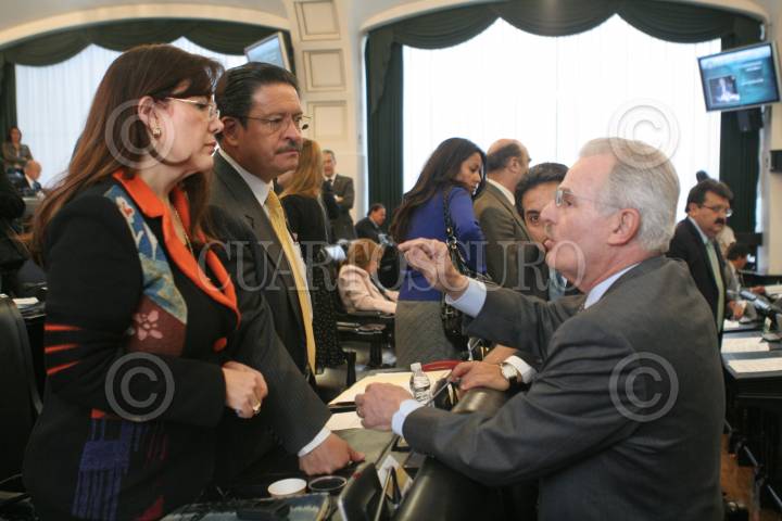 MÉXICO, D.F., 07SEPTIEMBRE2010.- Los senadores perredistas Antonio Mejía Haro, Rubén Velázquez López y Yeidckol Polevnsky Gurwitz, en la sesión de la Cámara de Senadores. FOTO: MOISÉS PABLO/CUARTOSCURO.COM