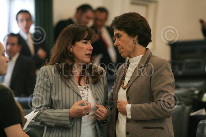 MÉXICO, D.F., 22MARZO2011.- Las senadoras Yeidckol Polevnsky y María de los Ángeles Moreno, en la sesión de la Cámara de Senadores. FOTO: MOISÉS PABLO/CUARTOSCURO.COM