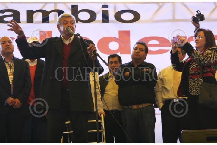 CHICOLOAPAN, ESTADO DE MÉXICO, 02ENERO2012.- Andrés Manuel López Obrador, precandidato de los partidos políticos PRD, PT y Movimiento Ciudadano, acudió a un mítin con los habitantes del municipio. FOTO: IVÁN STEPHENS/CUARTOSCURO.COM