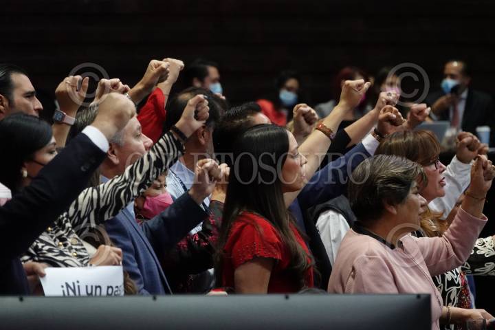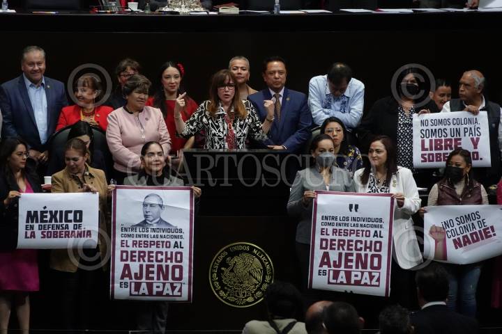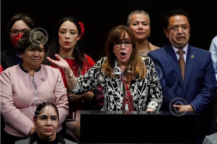 La diputada morenista Yeidckol Polevsky durante su intervención respecto a la discusión sobre la respuesta presidencial al Parlamento Europeo