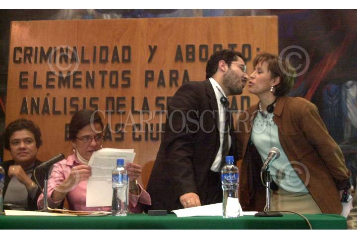 Bárbara Yllán, Ana Laura Magaloni, (directora de Estudios Jurídicos del CIDE), Martí Batres (Secretario de gobierno del GDF) y Rosario Robles (ex jefa de gobierno del Distrito Federal) en la conferencia Magistral "Criminalidad y Aborto: Elementos para el análisis de la seguridad en las ciudades" en el museo de la ciudad de México. FOTO: Iván Stephens/CUARTOSCURO.COM