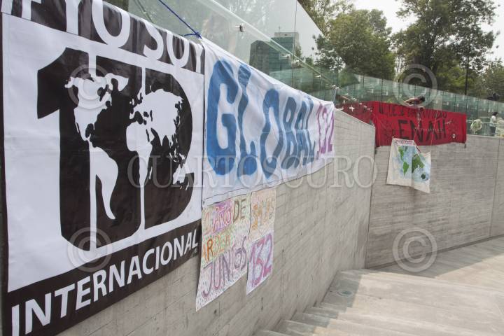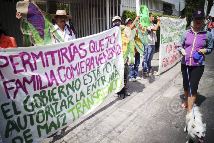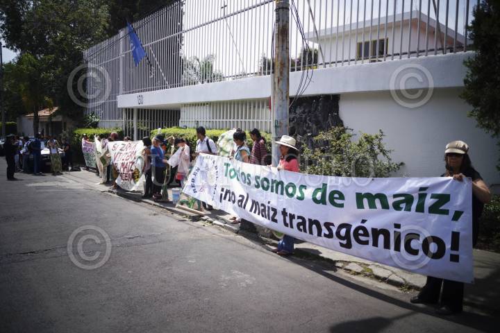 MÉXICO, D.F., 30ABRIL2013.- Integrantes de diferentes organizaciones sociales, de jóvenes, campesinos y ambientalistas, se manifestaron en la representación de la Organización de las Naciones Unidas para la Alimentación y la Agricultura (FAO), para rechazar las solicitudes de Monsanto y otras empresas transacionales de liberar maíz transgénico en estados del norte del país. Los jóvenes también manifestaron su preocupación por la participación de la FAO en el programa gubernamental "Cruzada Nacional contra el Hambre", campaña política, asistencialista y clientelar, con la participación de grandes transnacionales de la industria agroalimentaria como Nestlé, Pepsico y Walmart, quienes son los verdaderos responsables del hambre en el mundo, comentaron las personas convocadas. FOTO: ADOLFO VALTIERRA /CUARTOSCURO.COM