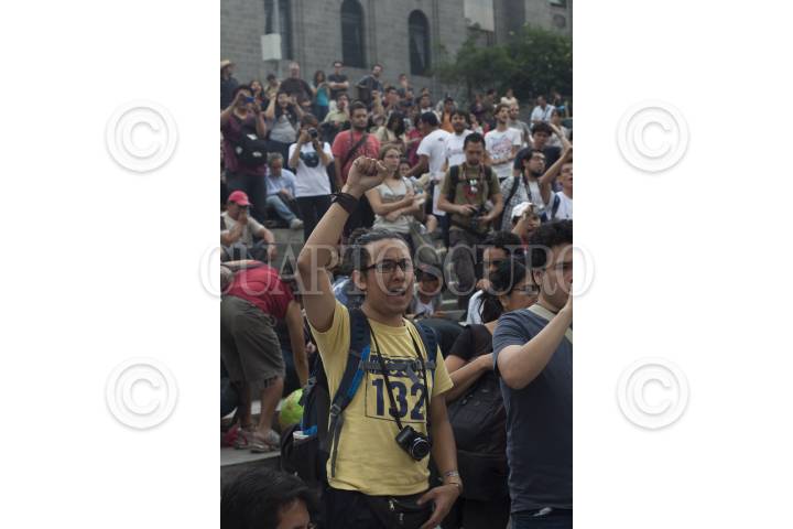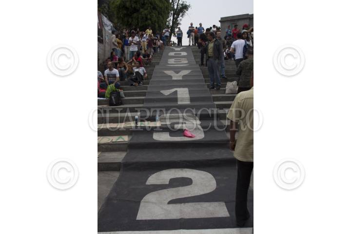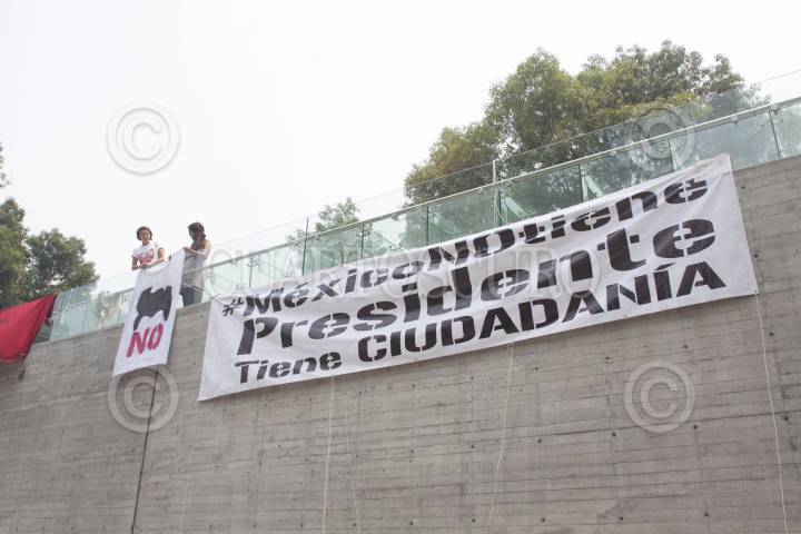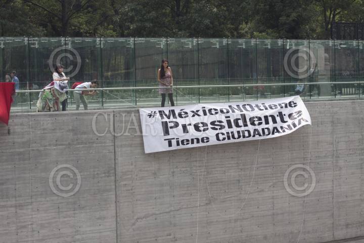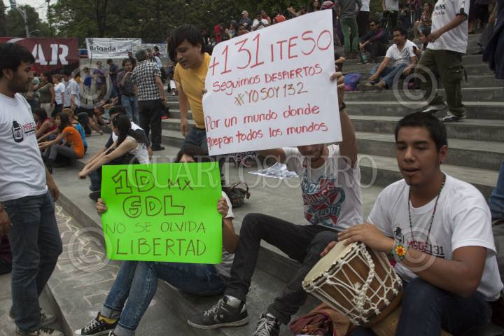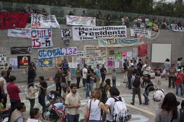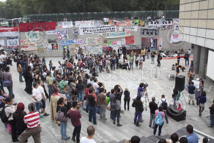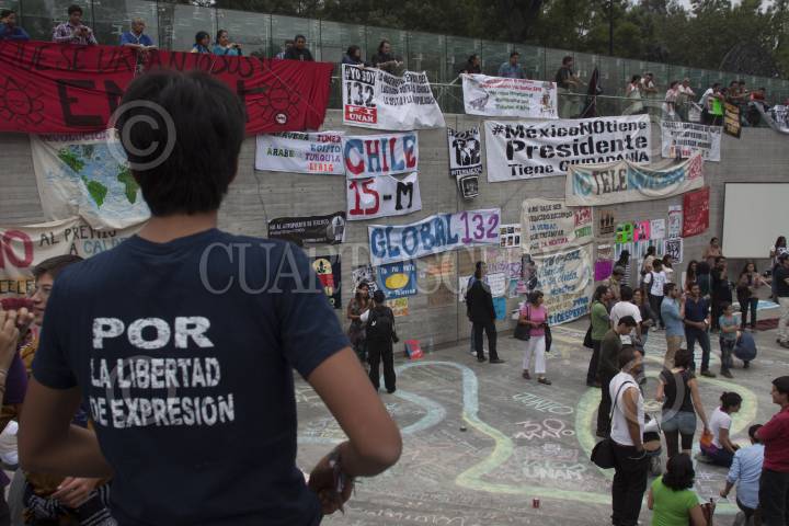 MÉXICO, D.F., 11MAYO2013.- Jóvenes del #Yo Soy 132 realizan un mitin que realizarán en la explanada de la Estela de Luz, esto a un año de la creación de este movimiento, que surgió tras una visita del ahora Presidente de México en la Universidad Iberoamericana y que tuvó que salir de forma presurosa tras las protestas de varios estudiantes de esta casa de estudios. FOTO: MOISÉS PABLO /CUARTOSCURO.COM
