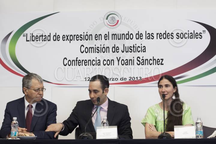 MÉXICO, D.F., 12MARZO2013.- La bloguera cubana Yoani Sánchez participó en el foro "Libertad de expresión en el mundo de las redes sociales", en el Senado de la República. FOTO: MOISÉS PABLO /CUARTOSCURO.COM
