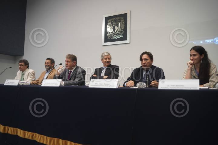 MÉXICO, D.F., 04SEPTIEMBRE2013.- En el Centro de Humanidades de la UNAM, se presentó el Universal Thinking Forum en la que los exponentes ofrecieron una semblanza sobre los ponentes que participarán en el foro. El Universal Thinking Forum tiene como objetivo "fomentar entre los jóvenes el debate de ideas que cambiarán al mundo y definirán el futuro…". Durante dos días 21 personalidades del pensamiento, la investigación, la ciencia, el arte y el deporte compartirán sus ideas. En la conferencia asistieron importantes personalidades de la ciencia, los medios y las humanidades como la periodistas Yoani Sánchez, quien al comenzar las sesión de preguntas y respuestas fue cuestionada por los medios sobre el comportamiento de los alumnos de la UNAM y de los Anarcopunks en los ultimos días, la periodista prefirió reservar su respuesta. También asistieron el Dr. Miguel Alcubirre, Dir. del Instituto de Ciencias Nucleares de la UNAM, el Dr. José Franco, Dir. General de Divulgación de Ciencias de la UNAM y Gabriel Rosas, Presidente de Universal Thinking Forum. FOTO: ALEJANDRO NEYRA /CUARTOSCURO.COM