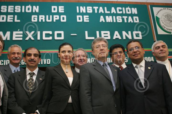 MEXICO, D.F. 25NOVIEMBRE2004.- Se inauguró la sesión del Grupo de Amistad México-Líbano, en la Cámara del Diputado. Sus integrantes se tomaron la foto del recuerdo, Carlos Farah Capur, Presidente del Centro Libanés, Al Ine Younes, Cónsul de Líbano, Nouhad Mahmoud, Embajor de Líbano en México y Luis Maldonado Venegas, presidente de la comisión. FOTO: Moisés Pablo/CUARTOSCURO.COM