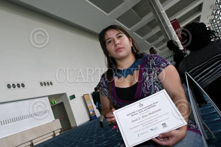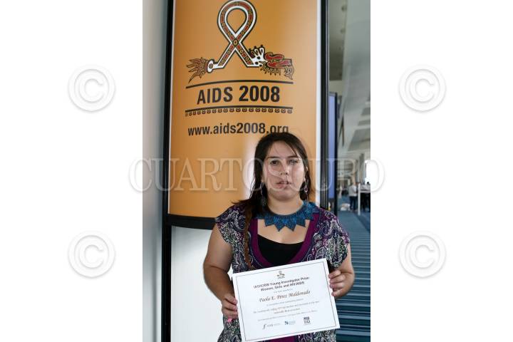 MÉXICO, D.F., 06AGOSTO2008.- Paola Perez Maldonado, mexicana ganadora del premio Young Investigator Prize Women, Girls and HIV/AIDS que se le entrego en la Conferencia Internacional sobre el SIDA que se realiza en el centro Banamex. FOTO: RODOLFO ANGULO/CUARTOSCURO.COM