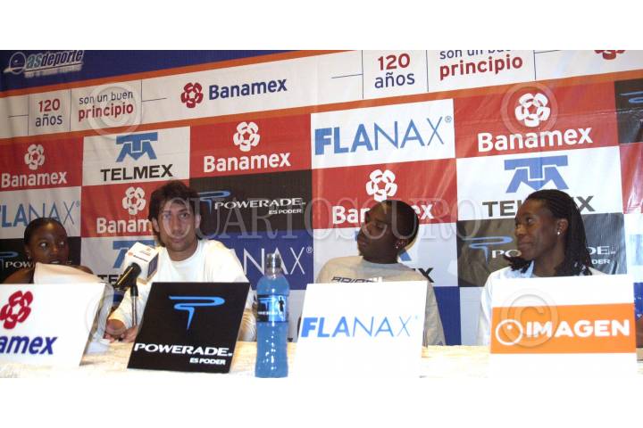 MEXDF20MAYO2004.- Antonio Guerra, (España) Jerome Young,(EU), Carla Portugal,(Portugal) participaran en la carrera del Gran Prix 2004 este próximo sabado en el estadio universitario. FOTO: Eunice Adorno/CUARTOSCURO.COM