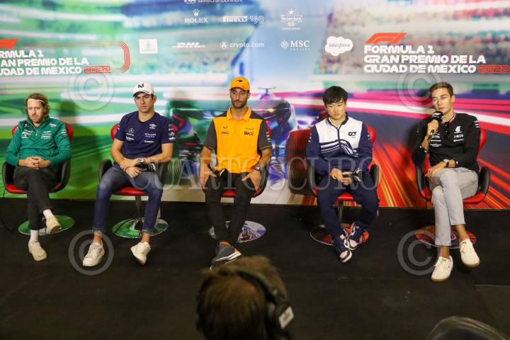 Sebastián Vettel, Nicholas Latifi, Daniel Ricciardo, Yuki Tsunoda, y George Russel, hablan sobre su próxima participación en el Gran Premio de la Ciudad de México 2022.
