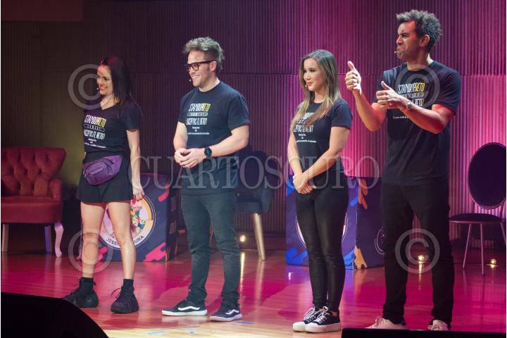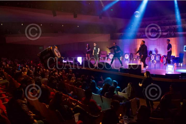 Jessica Segura, Isaac Salame Yurem Rojas y Mariazel Olle Casals, durante su participación en StanddupReto en el Centro Cultural El Cantoral.