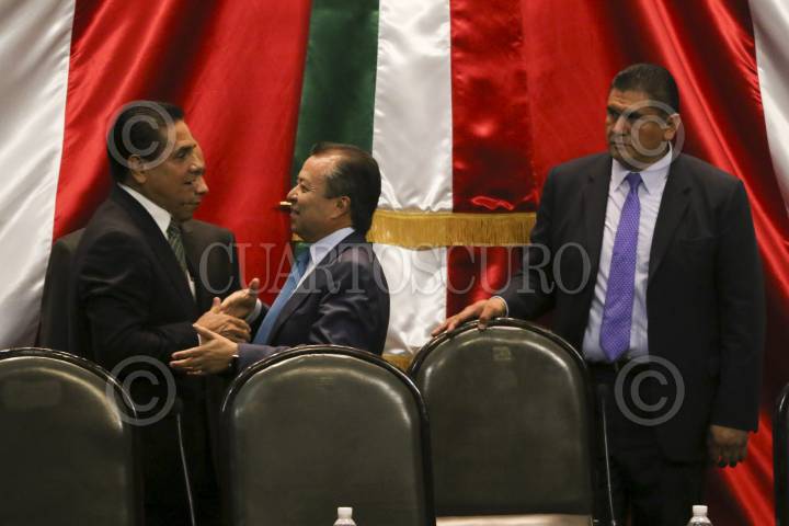 CIUDAD DE MÉXICO, 22AGOSTO2016.- Cesar Camacho Quiroz, coordinador del PRI en la Cámara de Diputados, Miguel Ángel Osorio Chong, Secretario de Gobernación, Jesús Zambrano, presidente de la mesa directiva de la Cámara de Diputados y Roberto Gil, presidente de la mesa directiva del Senado de la República, durante el informe de actividades de Jesús Zambrano. FOTO: SAÚL LÓPEZ /CUARTOSCURO.COM