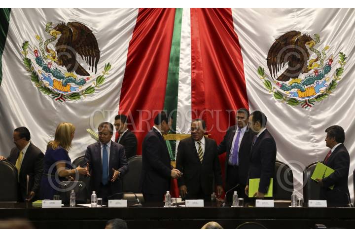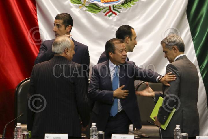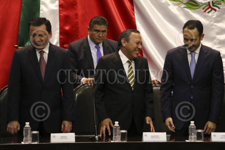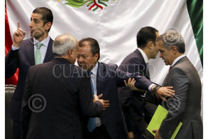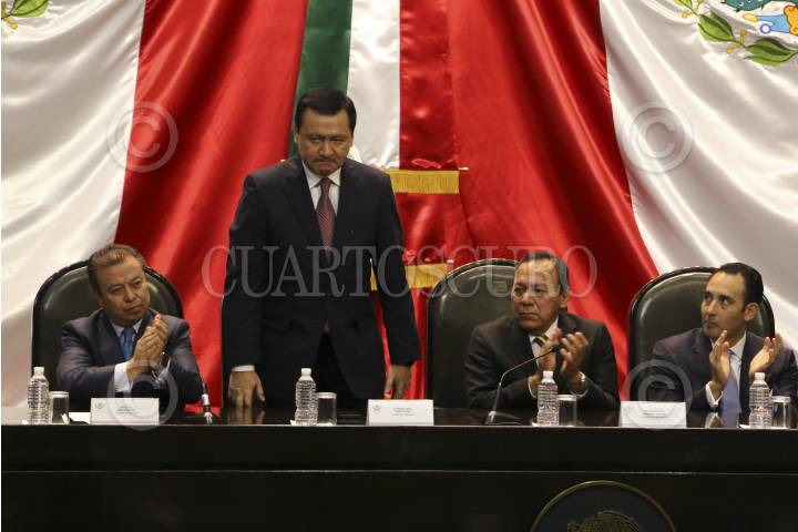 CIUDAD DE MÉXICO, 22AGOSTO2016.- Cesar Camacho Quiroz, coordinador del PRI en la Cámara de Diputados, Miguel Ángel Osorio Chong, Secretario de Gobernación, Jesús Zambrano, presidente de la mesa directiva de la Cámara de Diputados, Roberto Gil, presidente de la mesa directiva del Senado de la República y Francisco Martínez Neri, cordinador del PRD en la Cámara de DIputados durante el informe de actividades de Jesús Zambrano. FOTO: SAÚL LÓPEZ /CUARTOSCURO.COM