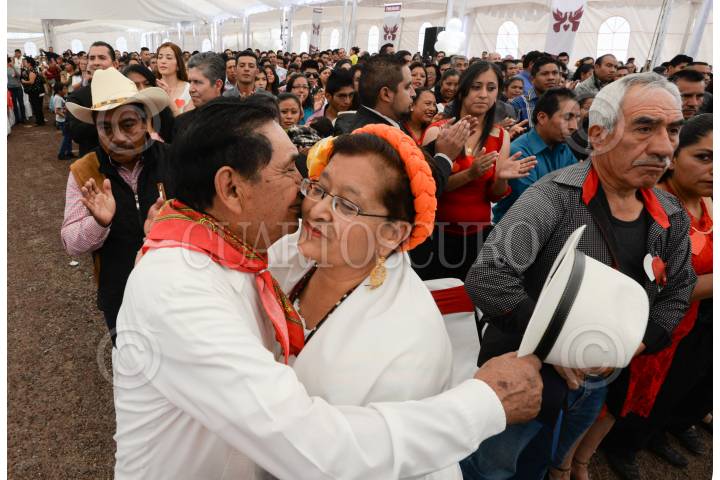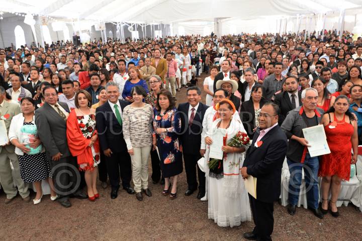 TOLUCA, ESTADO DE MÉXICO, 30MARZO2017.- Con la participación de 360 parejas se realizó la segunda campaña extraordinaria Matrimonios con Valor, los recién casados recibieron su acta de matrimonio civil de forma gratuita. La ceremonia estuvo encabezada por el presidente municipal de Toluca, Fernando Zamora Morales. FOTO: ARTEMIO GUERRA BAZ / CUARTOSCURO.COM