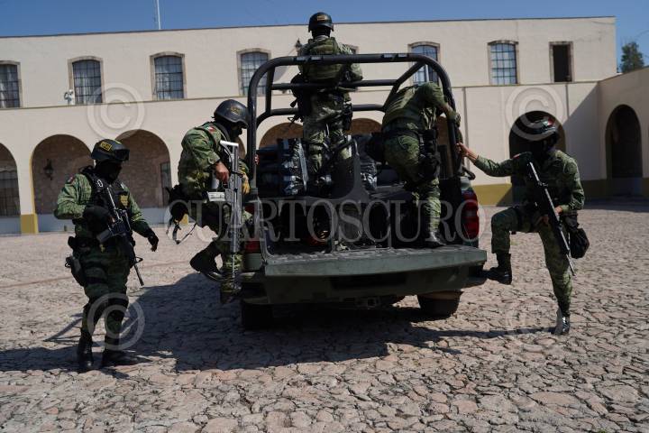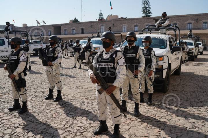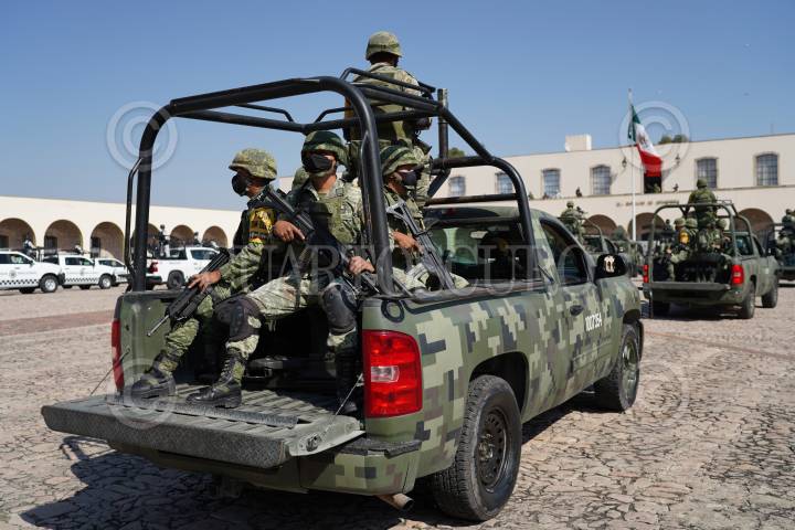 Llegada de elementos del Ejército Mexicano y la Guardia Nacional que iniciarán acciones contra el crimen que se registra en el estado de Michoacán.