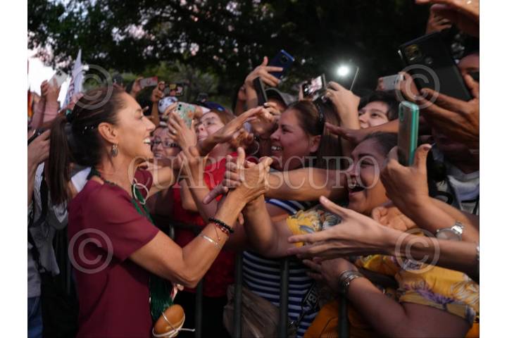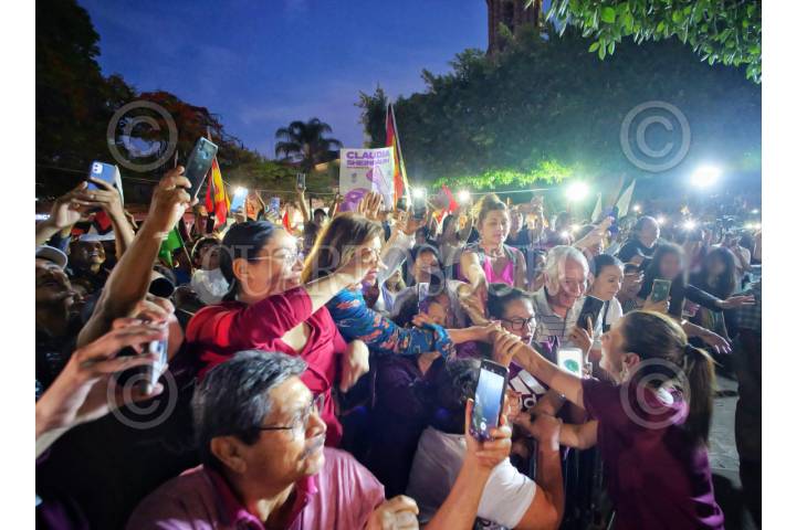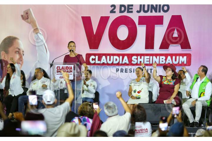 ZAMORA, MICHOACÁN, 02MAYO2024.- Claudia Sheinbaum, candidata presidencial por la coalición Sigamos Haciendo Historia, sostuvo un encuentro con simpatizantes ahí reitero que el único narcogobierno es el Felipe Calderón y sus secretario de Seguridad, Genaro García Luna, este último condenado por narcotráfico en Estados Unidos. FOTO: PRENSA CLAUDIA SHEINBAUM/CUARTOSCURO.CON