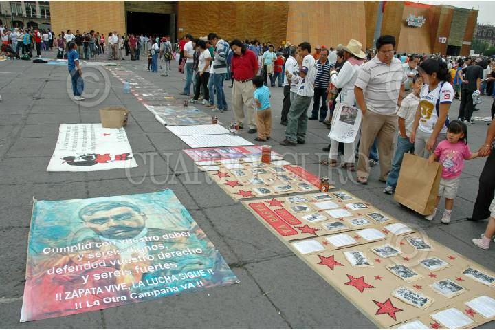 MÉXICO, D.F., 10ABRIL2010.- Miembros de La Otra Campaña del EZLN se instalaron en el Zócalo en este día de 91 aniversario del fallecimiento del "El Caudillo del Sur" Emiliano Zapata. FOTO: RODOLFO ANGULO/CUARTOSCURO.COM