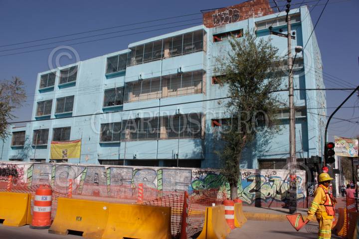MÉXICO, D.F., 20NOVIEMBRE2009.- Norberto Solís Cruz, diputado del Partido Verde Ecologista de México en la Asamblea Legislativa, visitó la secundaria126 ubicada en Zapotitlan, la cual a registrado daños estructurales por la Linea 12 del Metro. En la imagen se observan las escaleras del 3er piso que fue removido por motivos de seguridad. FOTO: ESSENE HERNÁNDEZ/CUARTOSCURO.COM